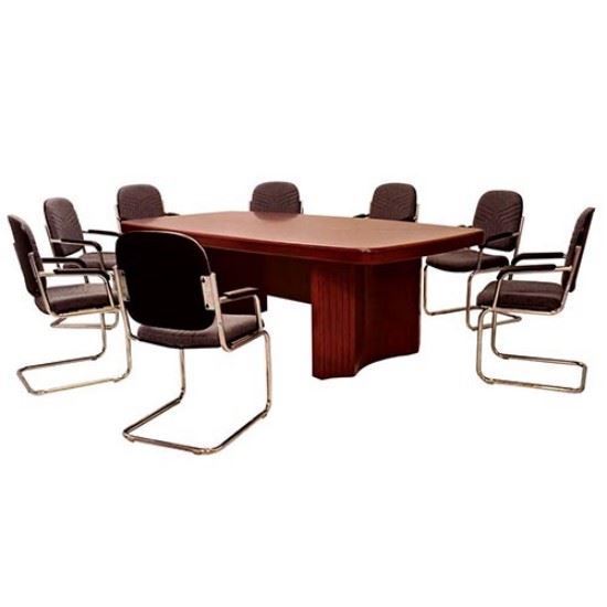 Bàn họp mặt liền hình hạt xoàn, có yếm giữa, không đợt. Chân bàn ghép hộp lượn cong soi rãnh trang trí.